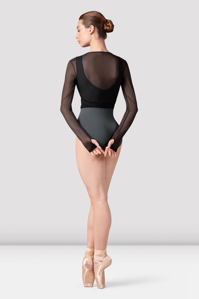 Our Ladies Bethan Mesh Wrap Top features full length sleeves, a timeless adjustable tie waist with a deep V neck. Pair with your favorite Bloch Entwine leotard for a studio ready look. Our Bloch Entwined Collection features a contemporary twist on classic silhouettes. Beautifully fashioned with intricate woven twist de