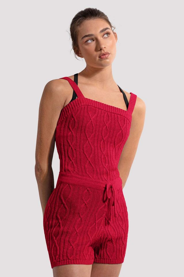 Our Ladies Celyn Knit Unitard features a sophisticated square neck with tank straps, a functional tie front waist to flatter each individual in a cosy cable knit. The perfect layering piece to keep you cozy during every warmup. Whether you're at the barre or backstage, our Camellia Knitted Warm-ups keep your muscles co