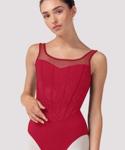 Our Ladies Isabella Floral Scoop Back Leotard features soft mesh panels to highlight the romantic sweetheart neck, comfortable tank straps and an intricately embroidered corset front bodice. Delicate floral embroidery blooms across each silhouette, with corset inspired seams adding a romantic touch to your dancewear wa