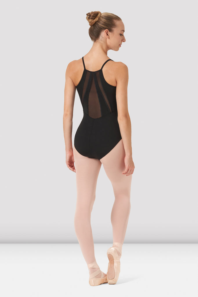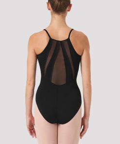 This chic high back camisole leotard features an elegant power mesh panelled back to expose parts of the lower back and make you look spectacular! Features a scoop front with shelf lining. High back camisole leotard Scoop front Ballet leg line Mesh panelled back