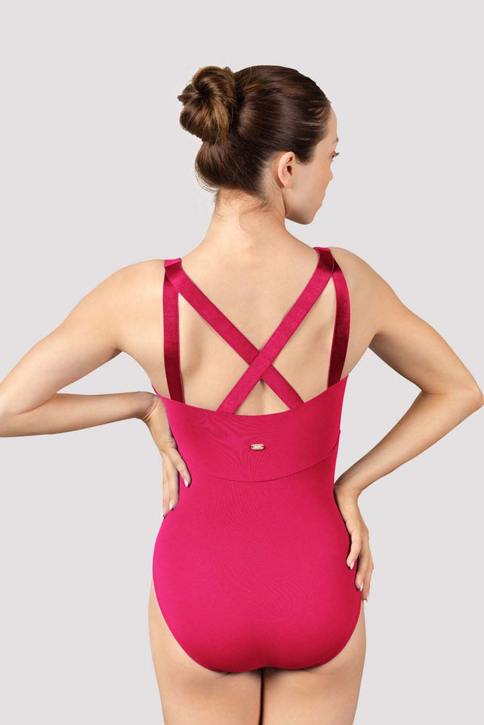 Our Ladies Mirella Majesty Cross Back Leotard features a classic scoop neck with high shine elastic straps to create a unique cross back detail and additional support. Discover our Ladies Mirella Majesty Collection; featuring exquisite stretch lace and lustrous high-shine trims that catch the light, ensuring all eyes a