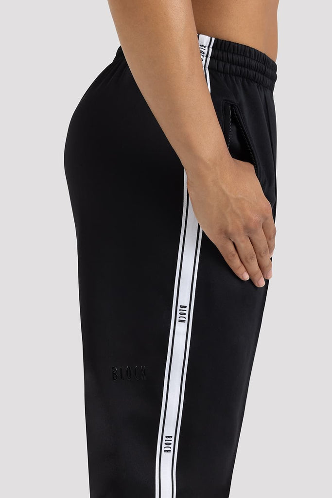 Keep warm and stylish in our Adult Bloch Logo Track Pants, created to be your perfect studio essential. Featuring branded BLOCH trim along the leg, zipped side pockets for holding all your essentials and an elasticated waistband. Style with our Adult Bloch Logo Track Jacket or Hoodie for a complete studio look. Our Stu